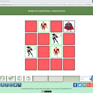 en la sesión de hoy trabajamos con una nueva aplicación en linea, Constructor 2.0, en el que cada uno desarrolló su juego. María hizo un puzle, Leti lo pasó un poco mal pero consiguió acabar su sopa de letras y Jorge hizo un empareja a los superhéroes.